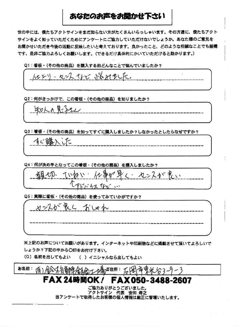 これからも、看板を通してお店の魅力を引き出すお手伝いを続けていきたいと思っています。
