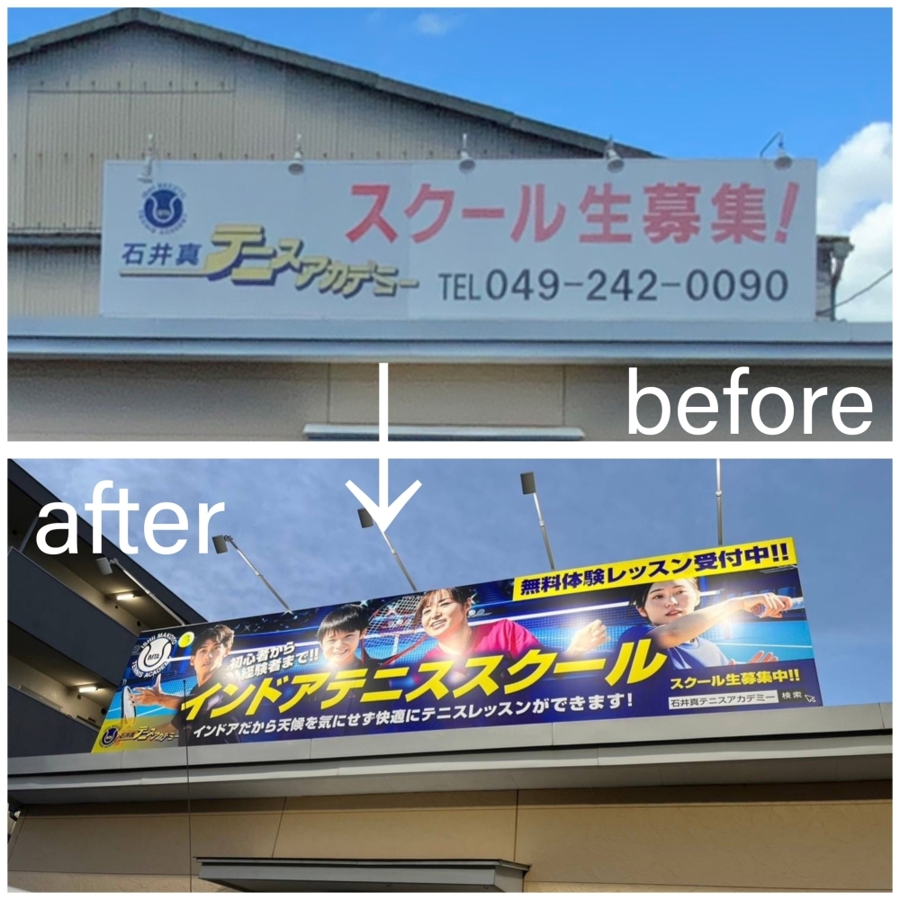 【施工事例】テニススクール様|看板リニューアルで「活気ある外観」と「電気代削減」を両立